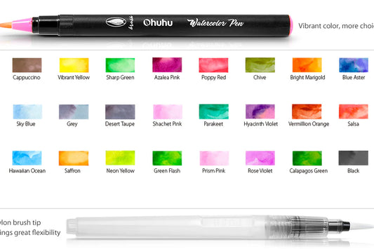 OHUHU - MARCADORES ACUARELABLES PUNTA PINCEL - 24 COLORES