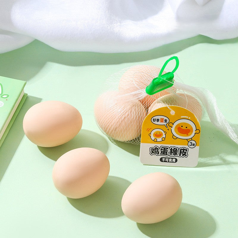 Este set de borradores en forma de huevito es puro encanto. Cada borrador tiene un diseño adorable que parece un pequeño huevito, perfecto para darle un toque kawaii a tu cartuchera o escritorio.
