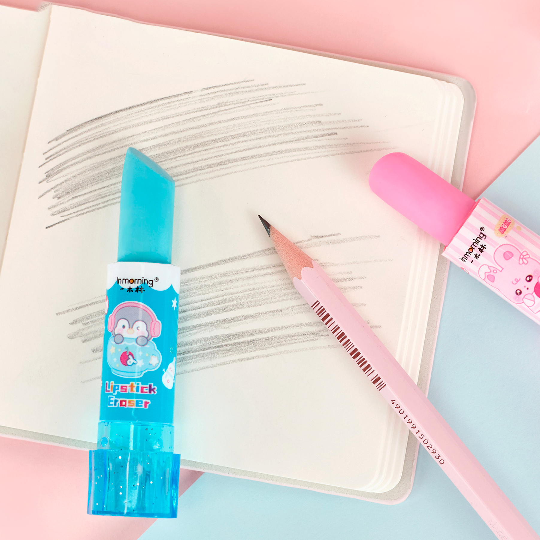 Dile adiós a los errores con estilo con nuestro borrador en forma de labial. Su diseño súper cute y colores pasteles lo hacen perfecto para decorar tu estuche y acompañarte en clases. Borra suave, no maltrata el papel y es ideal para fans de la papelería adorable.