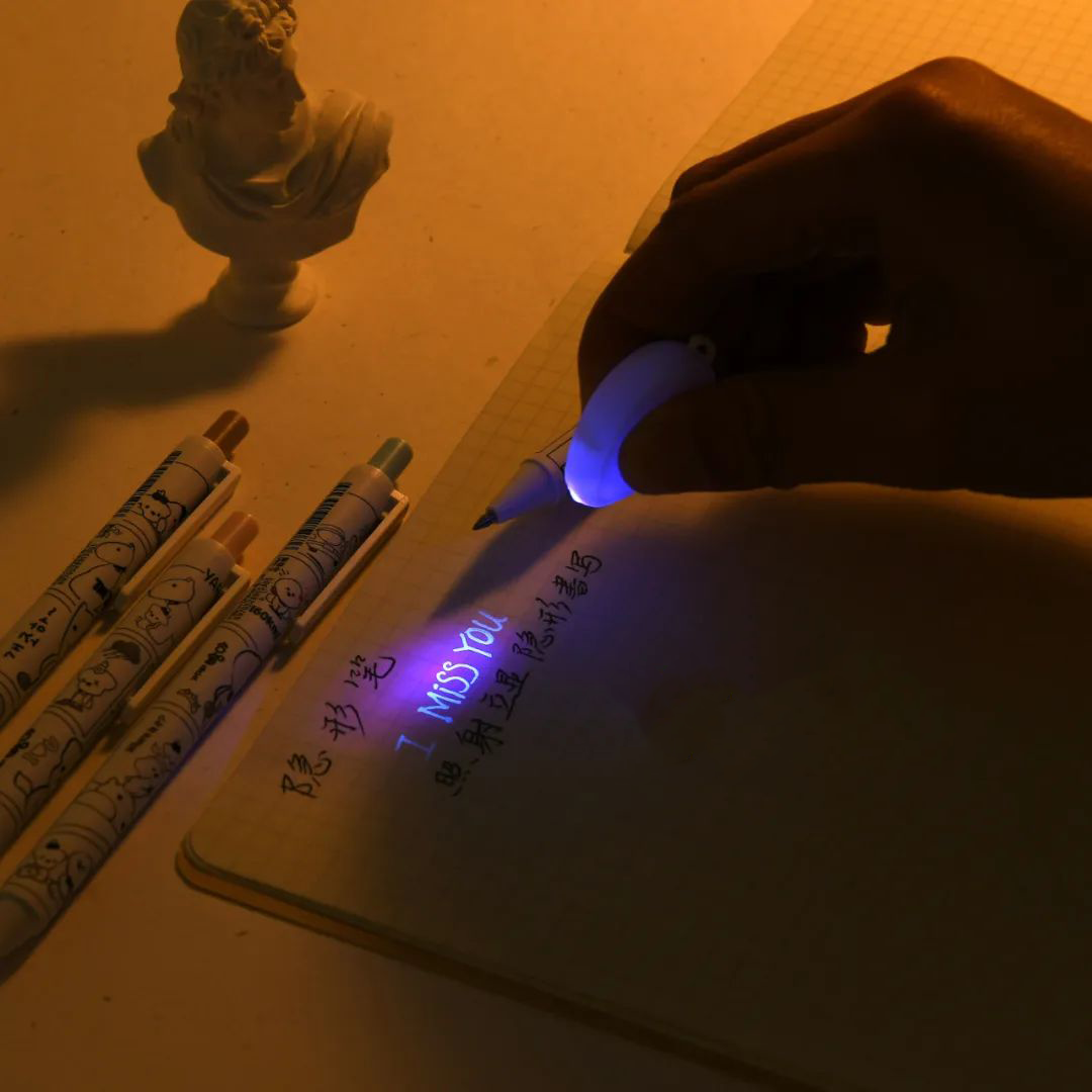 ¡Escribe mensajes secretos y descúbrelos con luz UV! Este lapicero mágico con tinta invisible es perfecto para divertirte, tomar notas privadas o dejar mensajes ocultos. Su diseño cute y minimalista lo hace ideal para estudiantes, amantes de la papelería y quienes disfrutan de un toque de misterio en su día a día.