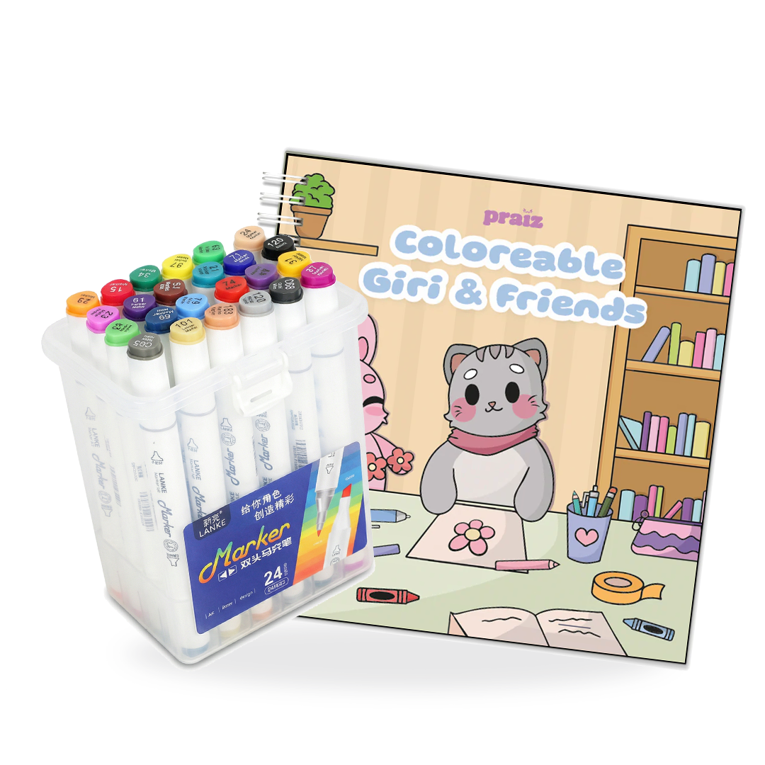 Descubre el Pack Coloreable Giri con 24 plumones Lanke, diseñado para quienes aman experimentar y dar rienda suelta a su creatividad. Con una paleta vibrante y variada, podrás mezclar tonos, crear efectos únicos y hacer que cada dibujo cobre vida. Este set incluye todo lo necesario para que Giri y sus amigos destaquen en cada trazo, convirtiéndose en tu compañero ideal para colorear, relajarte y expresar tu estilo.