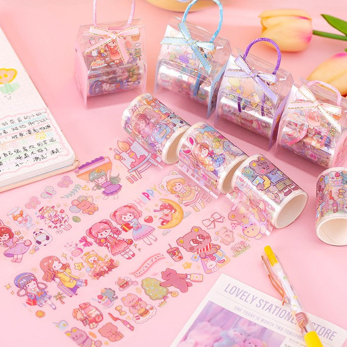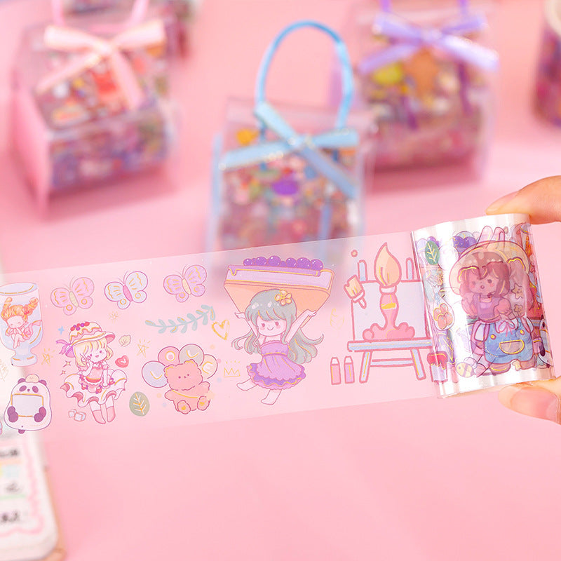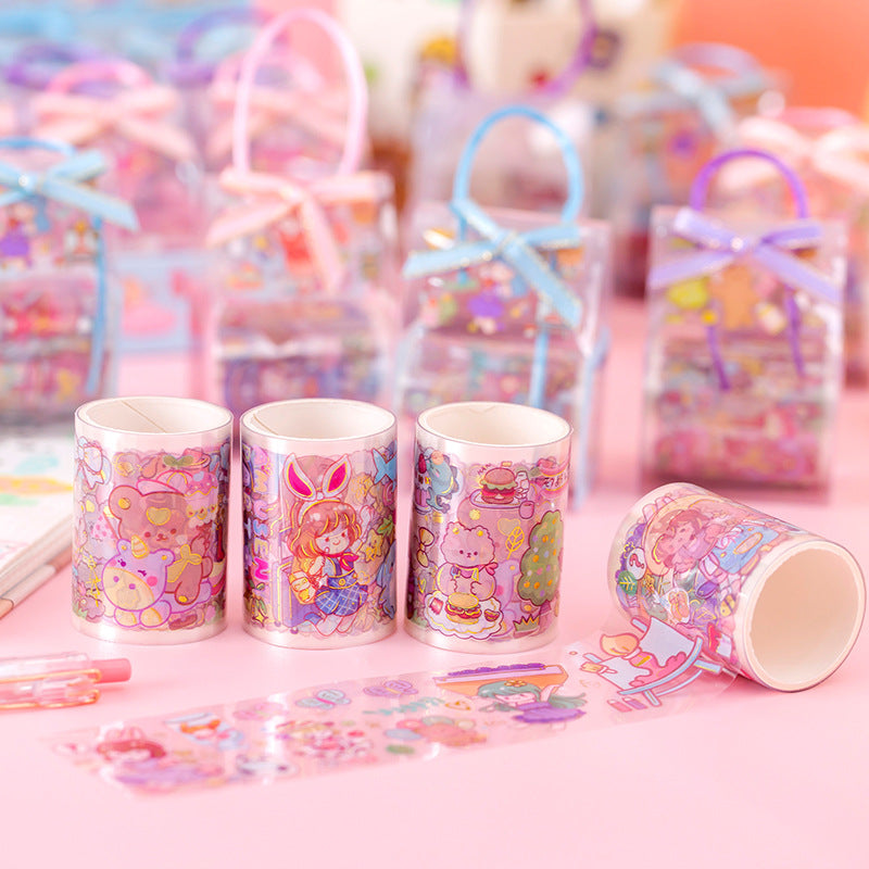 Decora tus apuntes, cuadernos y proyectos con un toque adorable con este washitape transparente kawaii. Sus diseños llenos de ternura harán que cada página destaque, y al ser transparente, se integra de manera delicada con cualquier fondo.